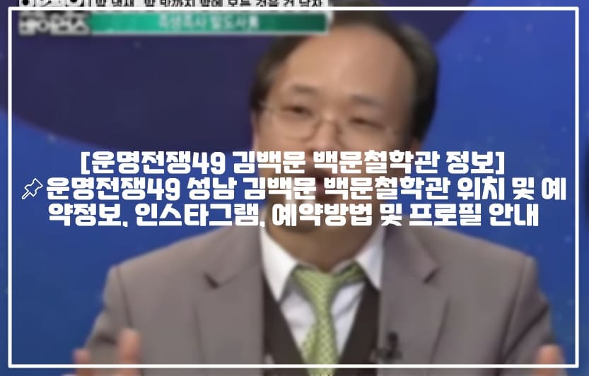 [운명전쟁49 김백문 백문철학관 정보]📌운명전쟁49 성남 김백문 백문철학관 위치 및 예약정보, 인스타그램, 예약방법 및 프로필 안내 (+김백문 백문철학관 위치, 김백문 백문철학관 예약방법, 운명전쟁49 김백문 백문철학관 나이, 운명전쟁49 김백문 백문철학관, 김백문 백문철학관 유튜브) 최근 디즈니+ 오리지널 예능 ‘운명전쟁49’가 공개되면서 무속과 점술에 대한 관심이 다시 뜨겁게 달아오르고 있습니다. 그중에서도 신기하게 족상 전문가로 이름날린 김백문님이 방송 이후 …